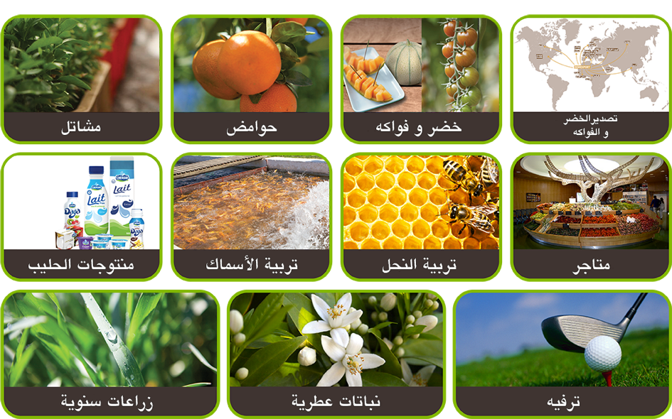 تتدخل الضيعات الفلاحية في العديد من قطاعات الانتاج الفلاحي: الحوامض، الخضر، الأشجار المثمرة، تربية الماشية، منتجات الحليب، النباتات العطرية، الزراعات السنوية، تربية النحل وتربية الأسماك.