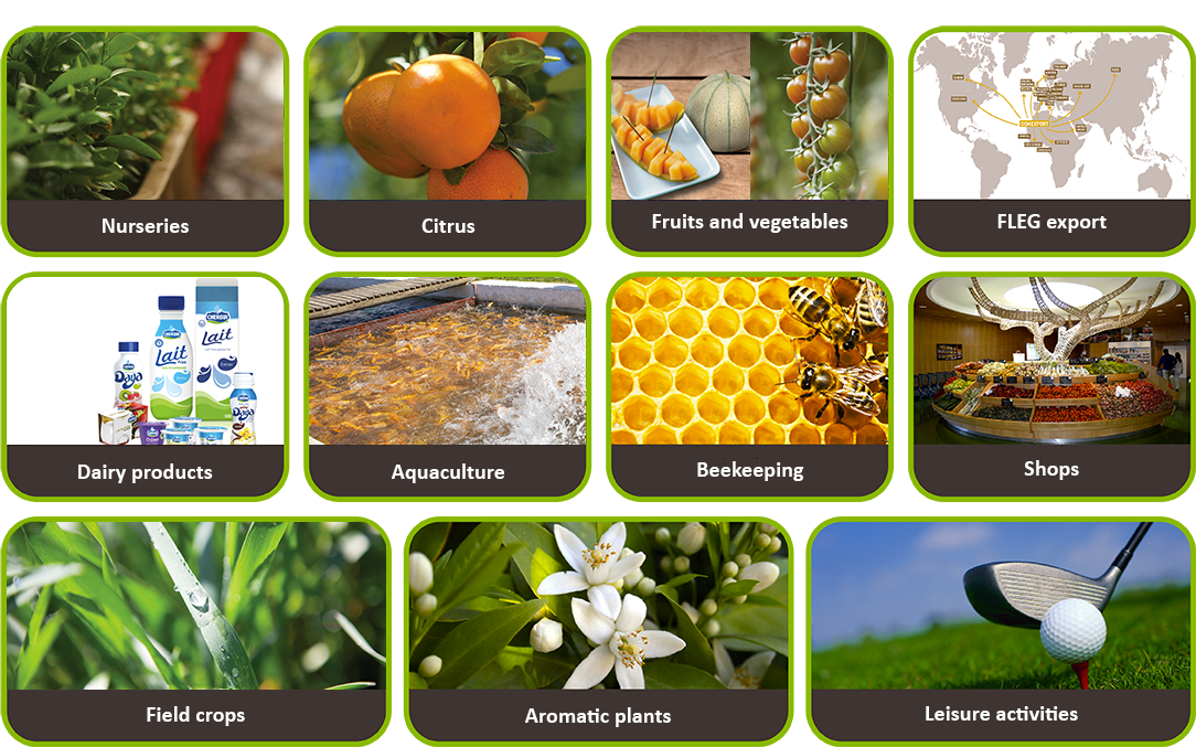 The Company Les Domaines Agricoles is involved in many agricultural production sectors including : citrus fruits, market gardening, fruit growing, livestock farming, dairy processing, aromatic plants, annual crops, beekeeping and aquaculture.
